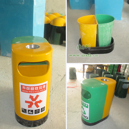 環(huán)保分類玻璃鋼垃圾桶 學(xué)校的首選深圳寶安沙井實(shí)驗(yàn)學(xué)校,是欣方圳老顧客了。按照之前訂購(gòu)的玻璃鋼垃圾桶樣板生產(chǎn),發(fā)實(shí)物照給工廠的廠長(zhǎng)確認(rèn)。A21玻璃鋼環(huán)保分類垃圾桶的規(guī)格為:680*400*850mm.這款垃圾桶來頭可不小哦,它是獲得了專利外觀設(shè)計(jì)的玻璃鋼垃圾桶。每個(gè)產(chǎn)品是經(jīng)過的嚴(yán)格生產(chǎn)程序制造出來,貼上產(chǎn)品合格證,符合企業(yè)高品質(zhì)標(biāo)準(zhǔn)。玻璃鋼垃圾桶一邊嫩綠,一邊中絡(luò)黃,底座黑色,外加一個(gè)煙灰缸巧妙的搭配,簡(jiǎn)潔、美觀。桶蓋/桶身采用FRP玻璃鋼復(fù)合材料制造,具有防腐、防盜、防生銹、易清潔等特點(diǎn),表面涂層采用高分子耐老化膠衣涂層,色澤明快、持久。