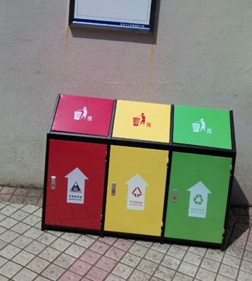 F139戶外鋼板四分類垃圾桶